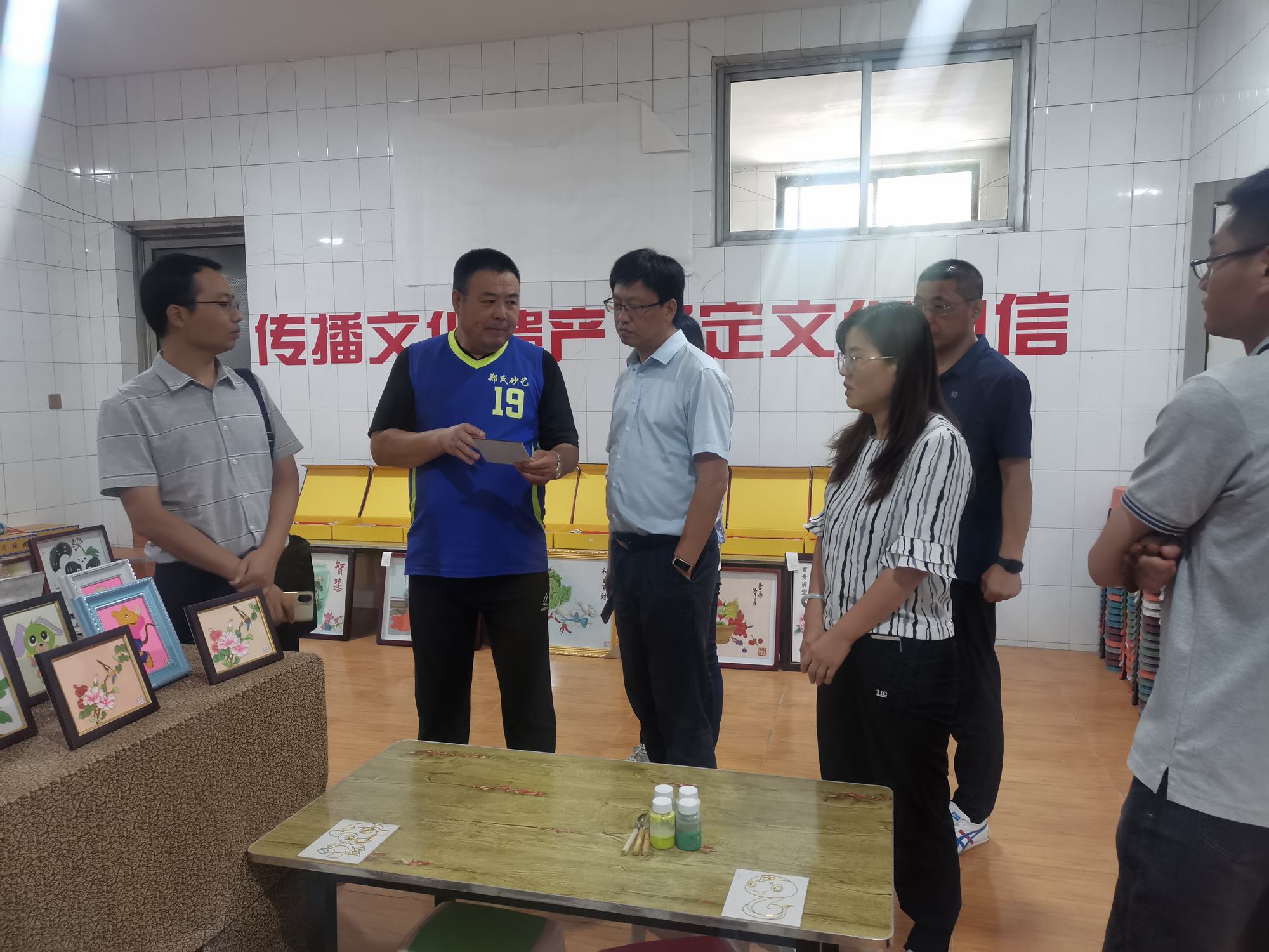 2022年8月19日,為了解河北省文化產(chǎn)業(yè)示范基地的發(fā)展情況,聚焦文化產(chǎn)業(yè)示范基地發(fā)展面臨的重點難點問題,總結(jié)提煉省內(nèi)優(yōu)秀文化產(chǎn)業(yè)示范基地工作中的成效和經(jīng)驗做法。由河北省文化和旅游廳產(chǎn)業(yè)處副處長馬運飛、河北大學(xué)新聞傳播學(xué)院副院長商建輝、河北省社會科學(xué)院省情研究所副所長張葳 、河北省科學(xué)院地理科學(xué)研究所主任趙桂燕、河北省科學(xué)院地理科學(xué)研究所副主任施俊莊組成的考察團在承德市旅文局主任李丹、興隆縣旅文局副局長高子營的陪同下蒞臨鄭氏砂藝進行考察指導(dǎo)。