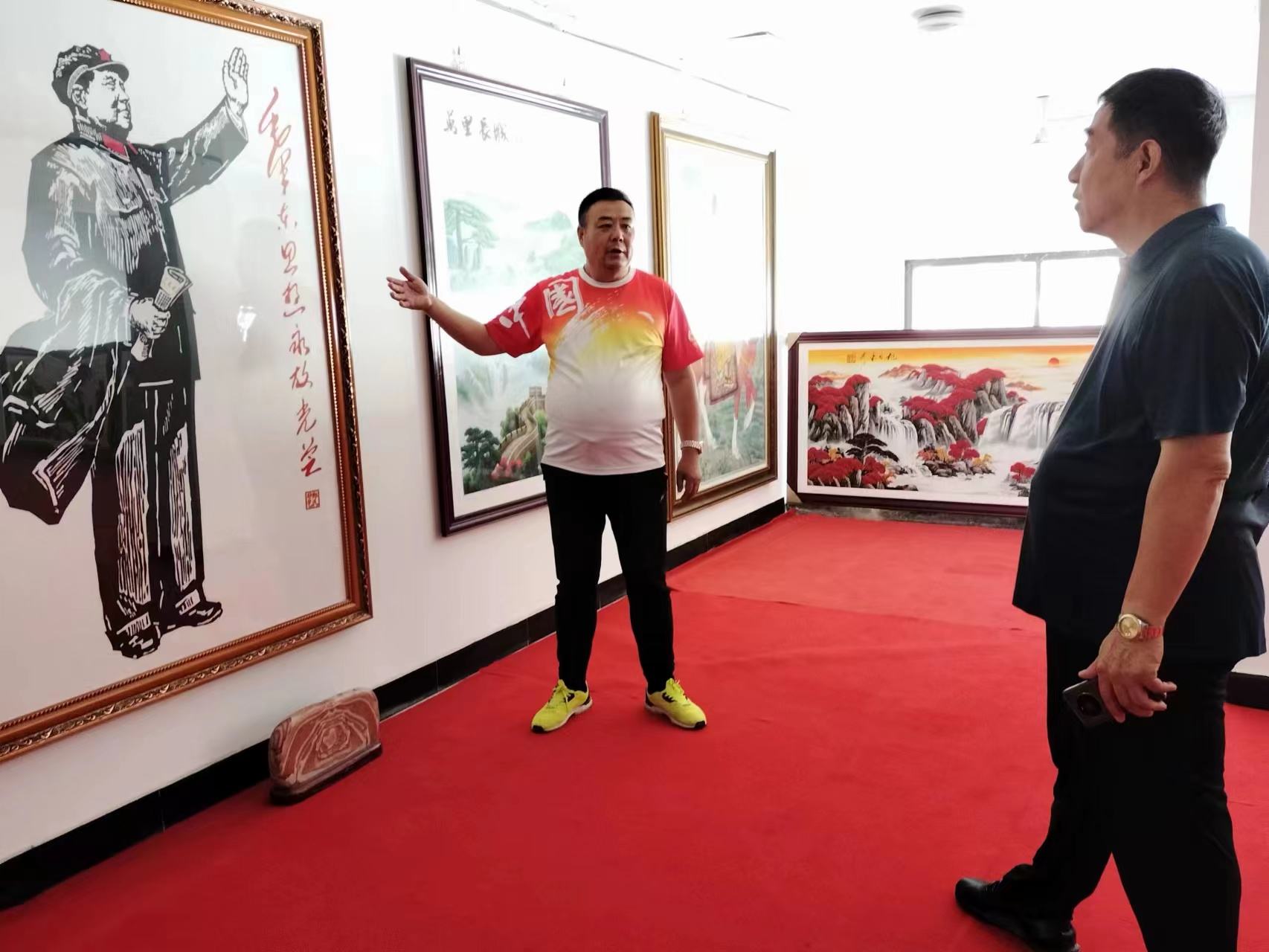 王智慧經(jīng)理等人在鄭總的陪同下參觀了砂畫制作車間和鄭氏砂藝非遺文化展館,參觀過程中,鄭總對鄭氏砂藝(畫)的發(fā)展歷程、制作流程、企業(yè)榮譽和發(fā)展前景做了簡單介紹。同時鄭總就企業(yè)代表性砂畫及其制作時采用的材料及背后的歷史文化進行了簡略描述。