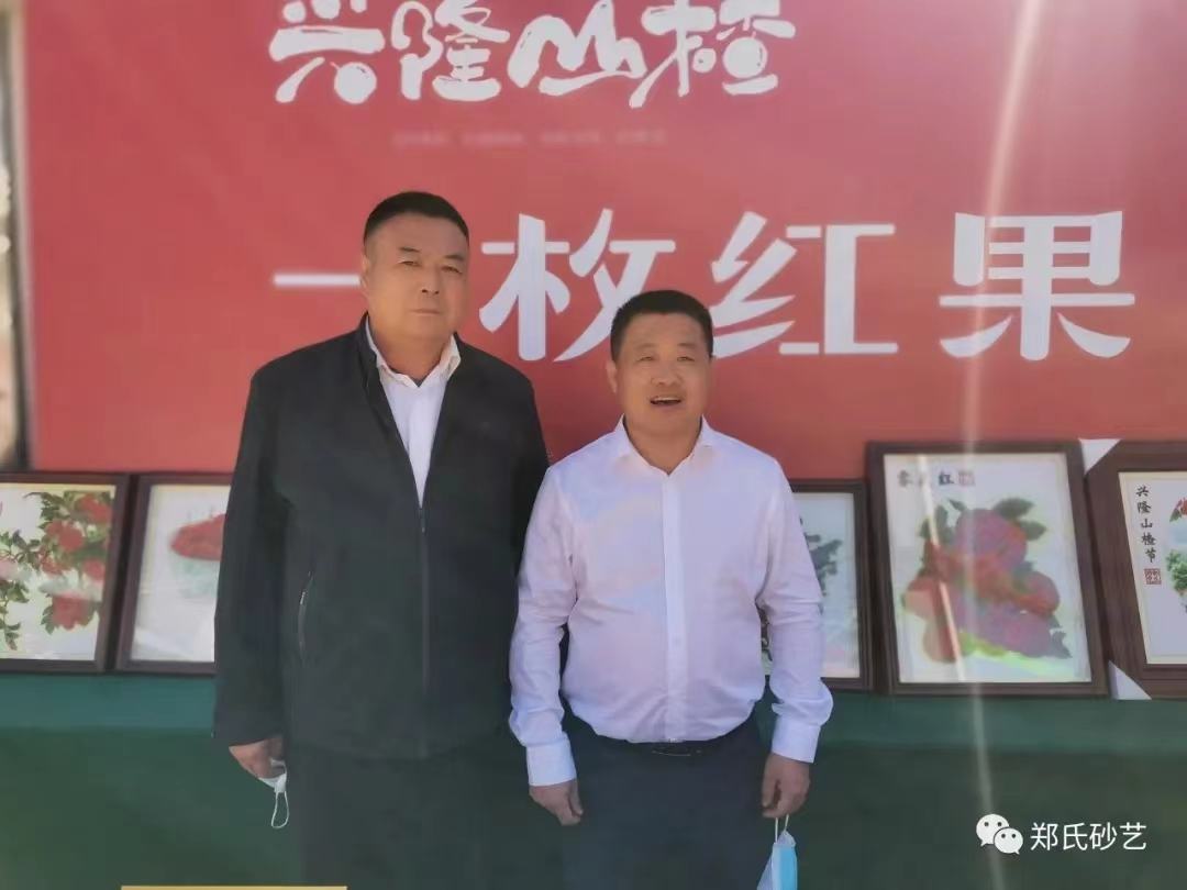 在此次山楂節(jié)上,鄭氏砂藝展出了《興隆山楂節(jié)》、《霧靈紅》、《山里紅》、《興隆山楂》等數(shù)十幅非遺砂畫作品,用獨特的藝術(shù)方式展現(xiàn)了我縣山楂豐收的盛況,為興隆縣第五屆山楂節(jié)獻上了一份另類的藝術(shù)“厚禮”。市委副書記郭旭濤等一行領(lǐng)導相繼駐足觀看砂畫作品,并同鄭氏砂藝董事長鄭鐵軍進行親切交談,郭旭濤書記對鄭氏砂藝非遺文化傳承和保護工作給予了充分肯定和贊揚。鄭氏砂藝的展出既體現(xiàn)了承德對提升“非遺”文化軟實力的重視,又反映出承德地區(qū)民族文化自信的提升,砂藝人也會用藝術(shù)講好承德故事,傳播好承德聲音。