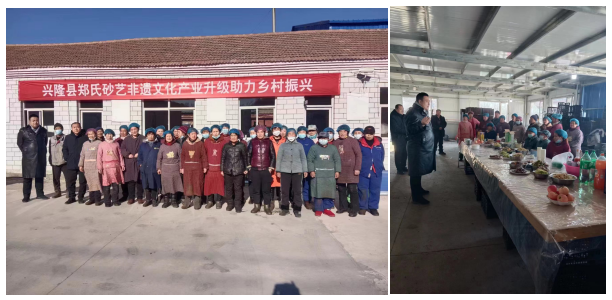 2021年11月,企業(yè)選址興隆縣李家營下臺子村原小學(xué)成立興隆縣鐵金研學(xué)基地,并結(jié)合當(dāng)?shù)剞r(nóng)村農(nóng)民的農(nóng)業(yè)種植情況,組織當(dāng)?shù)?03戶村民自愿聯(lián)合成立了農(nóng)民專業(yè)合作社,建立了鄭氏砂藝非遺文化產(chǎn)業(yè)升級助力鄉(xiāng)村振興就業(yè)工坊。在企業(yè)的引領(lǐng)下合作社展開了農(nóng)產(chǎn)品收購和初加工業(yè)務(wù),此舉不但解決了農(nóng)民的就業(yè)問題,也解決了農(nóng)產(chǎn)品的銷售問題,切實(shí)的帶動(dòng)了當(dāng)?shù)厝罕娋徒蜆I(yè)、增收致富。