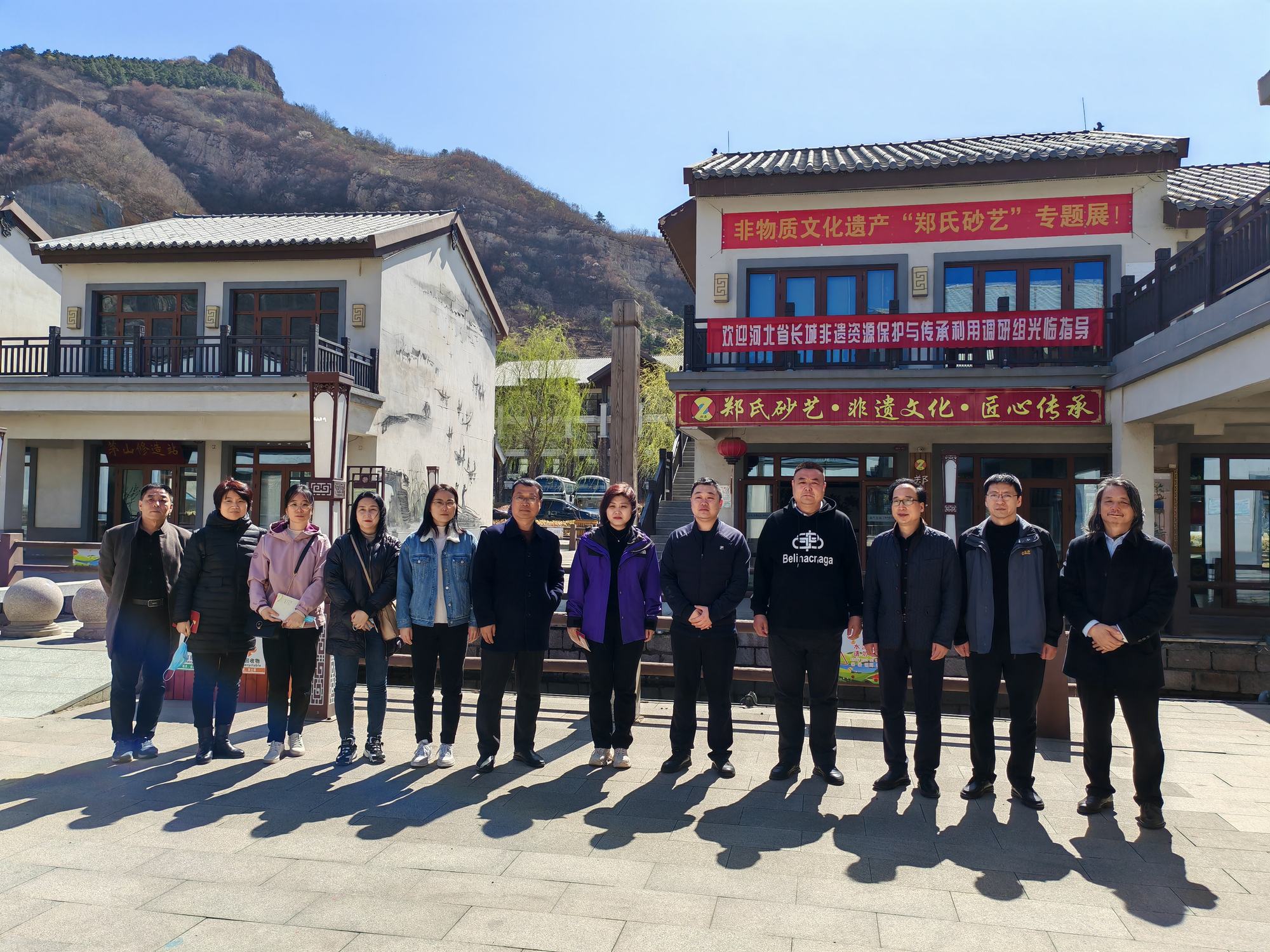 2023年4月8日上午,河北省文化和旅游廳非遺處四級主任科員集乾釗,省群眾藝術(shù)館(省非遺保護(hù)中心)專職副書記杜云生、省群眾藝術(shù)館(省非遺保護(hù)中心)非遺發(fā)展部主任趙麗蘋、省群眾藝術(shù)館(省非遺保護(hù)中心)非遺發(fā)展部干部王欣欣、河北地質(zhì)大學(xué)調(diào)研團(tuán)隊、承德市和興隆縣等相關(guān)領(lǐng)導(dǎo)蒞臨鄭氏砂藝考察指導(dǎo),考察團(tuán)來到位于興隆縣阿爾卡迪亞度假村的鄭氏砂藝非遺文化體驗展館現(xiàn)場,對非物質(zhì)文化遺產(chǎn)鄭氏砂藝的傳承和發(fā)展情況進(jìn)行了調(diào)研工作。