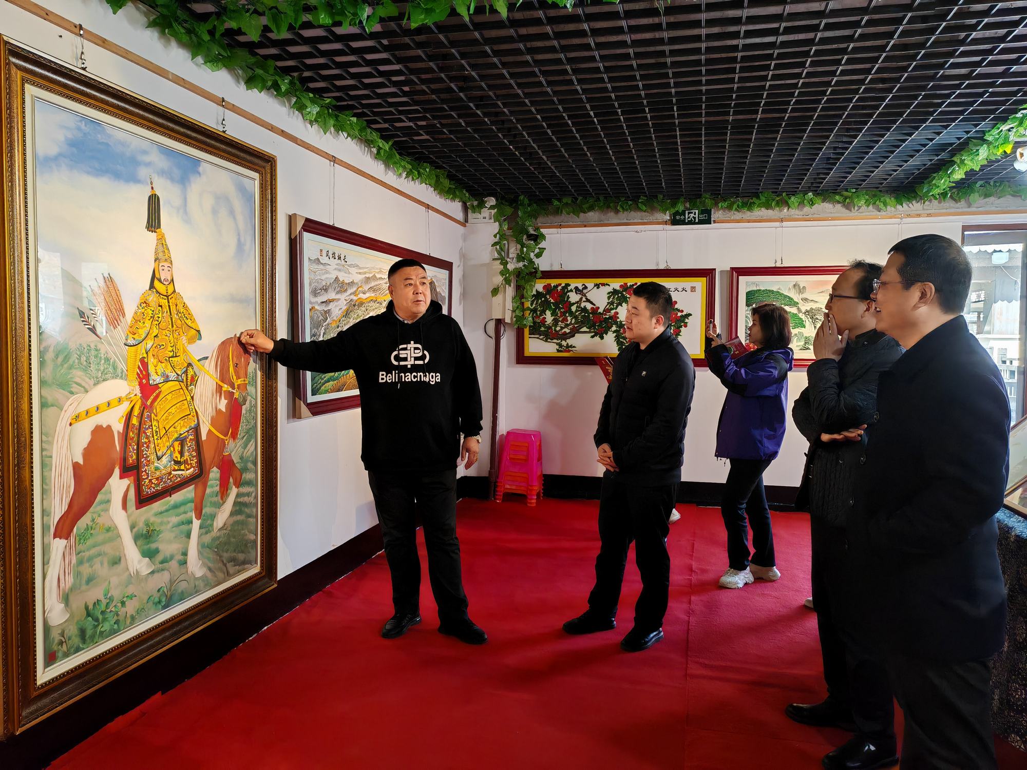 集乾釗主任一行在鄭鐵軍董事長的陪同下參觀了鄭氏砂藝非遺展館,觀看了鄭氏砂藝創(chuàng)作的各類非遺砂畫作品,考察團(tuán)領(lǐng)導(dǎo)在長城砂畫系列前駐足欣賞,對栩栩如生的長城砂畫作品給予了高度贊譽(yù)。期間董事長鄭鐵軍對近年來鄭氏砂藝非遺文化的發(fā)展情況進(jìn)行了簡單介紹。集乾釗主任對鄭氏砂藝非遺文化的傳承和發(fā)展表示了充分肯定,并對鄭氏砂藝的傳統(tǒng)手工技藝給予高度評價。