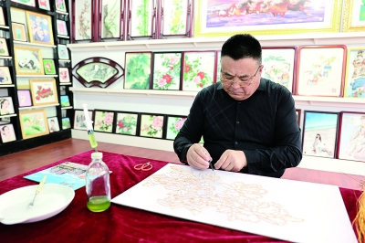 “政府牽線搭橋,我們免費提供原材料,群眾零成本制作,在不耽誤農(nóng)活的情況下,每天利用閑暇時間制作砂畫,不但拓寬了群眾的增收渠道,還為鄉(xiāng)村振興作出了貢獻,并很好地傳承了優(yōu)秀傳統(tǒng)文化。”鄭鐵軍介紹。