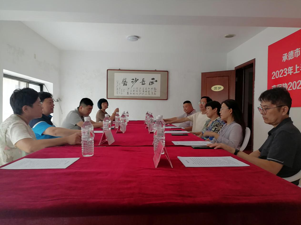 參觀結束后,省市縣各級領導和學者進行了文化藝術交流座談。會上,鄭氏砂藝董事長鄭鐵軍對梁建中主任一行蒞臨鄭氏砂藝表示熱烈歡迎,并就鄭氏砂藝基本情況、社會效益、主要特點、亮點、發(fā)展創(chuàng)新等多方面進行了介紹,梁建中主任對鄭氏砂藝的傳承發(fā)展給予了肯定,介紹了河北文藝家之家、河北省民間文藝精品展開展情況以及已產生的社會影響,并對今年精品展展品提升和擷英書籍出版等工作進行了說明。同時,在藝術創(chuàng)作方面提出了寶貴意見,他表示首先要依托當?shù)氐奈幕Y源,創(chuàng)作具有承德地域特色的,且彰顯深厚底蘊的文藝作品,其次,文藝創(chuàng)作要深刻把握民族復興的時代主題,堅持與時代同頻共振,創(chuàng)作一批主題突出、特色鮮明、影響顯著的新時代藝術作品。