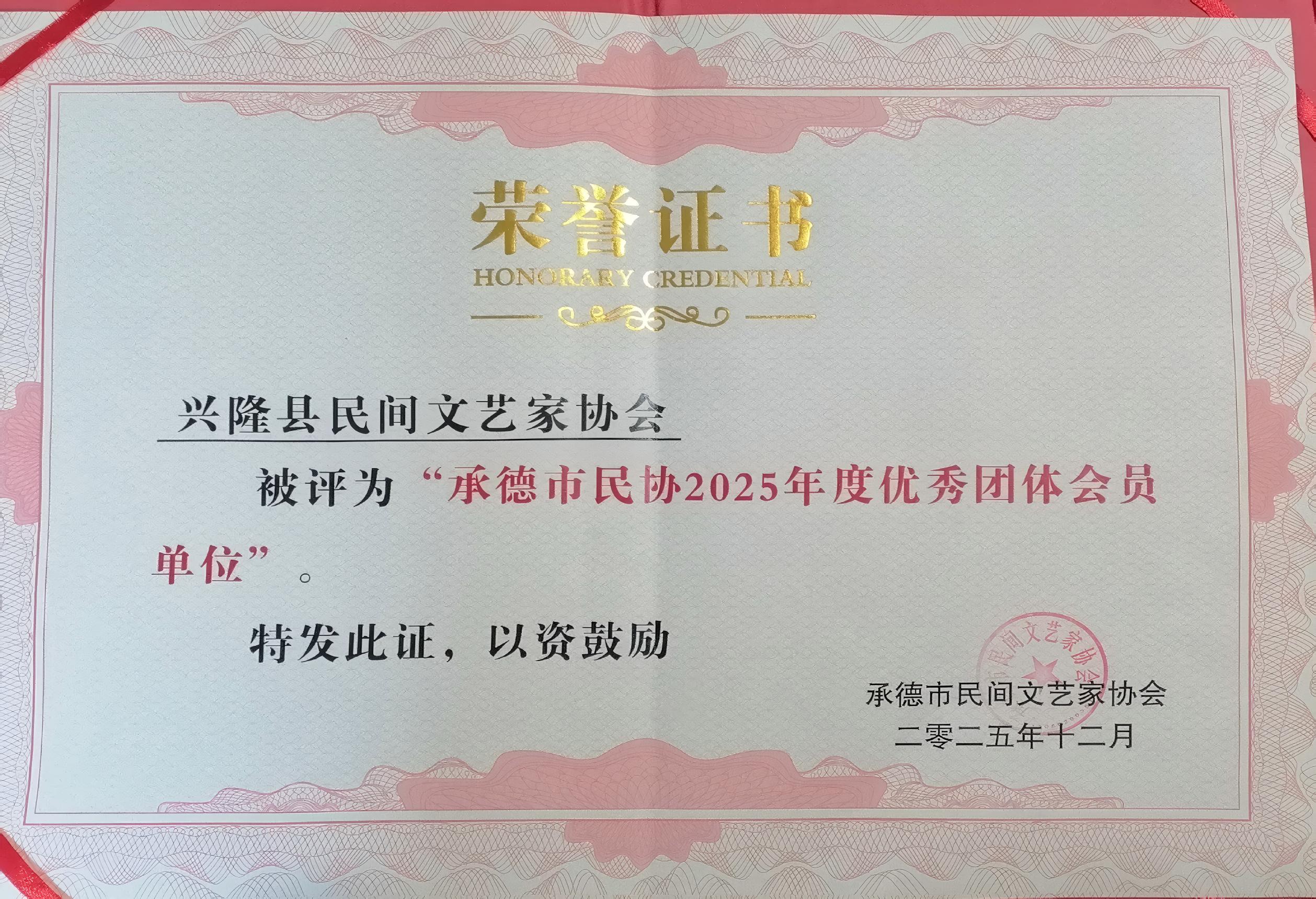 興隆縣民間文藝家協(xié)會 獲評承德市民協(xié)2025年度優(yōu)秀團體會員單位