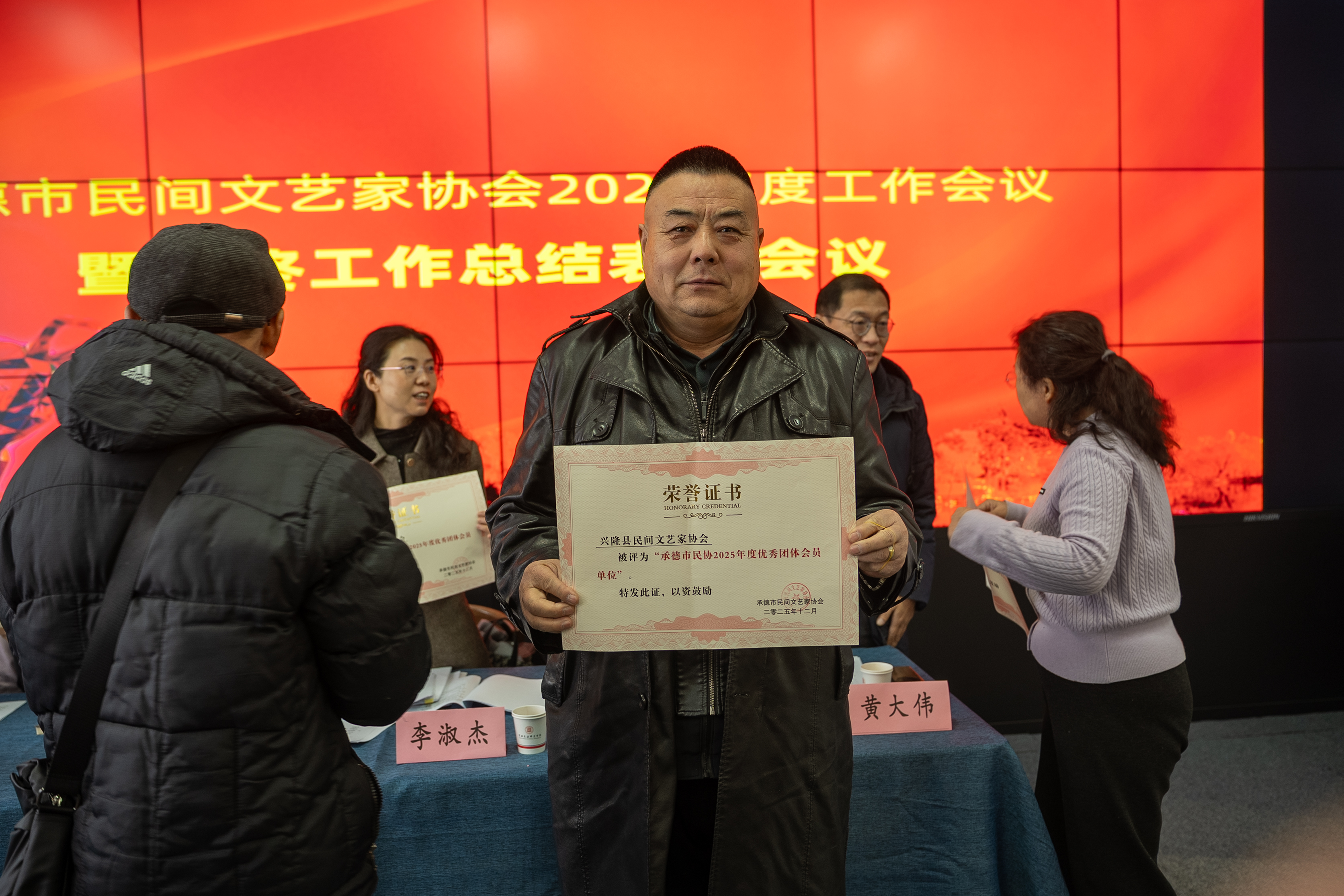 表彰環(huán)節(jié)中,市民協(xié)副主席朱長勝宣讀了2025年度評優(yōu)名單。興隆縣民間文藝家協(xié)會憑借全年卓有成效的工作,獲評“2025年度優(yōu)秀團體會員單位”。市文聯(lián)副主席李淑杰與市民協(xié)主席石俊鳳共同為其頒發(fā)榮譽證書。
